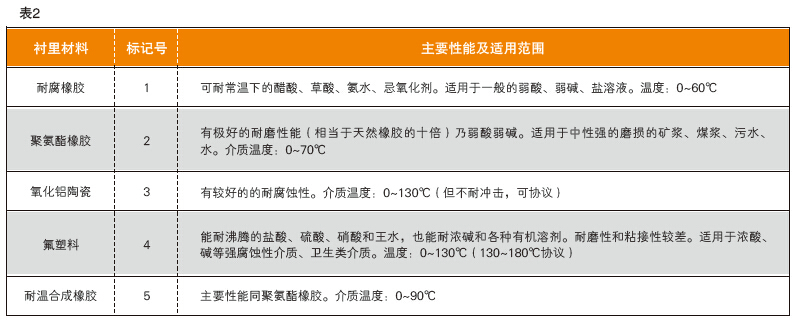 襯里材料的性能及適用范圍