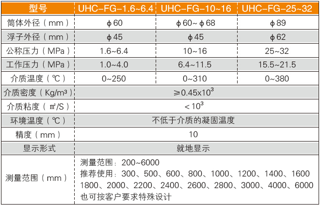 磁浮液位計(jì)技術(shù)參數(shù)表